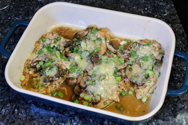 This super comforting dish should remind you of chicken Marsala but with a cheesy twist. The chicken is started in a pan to give it color, but finished simmering in ...