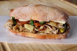 Zesty Tuscan chicken sandwich on an asiago bagel bun (Panera copycat)